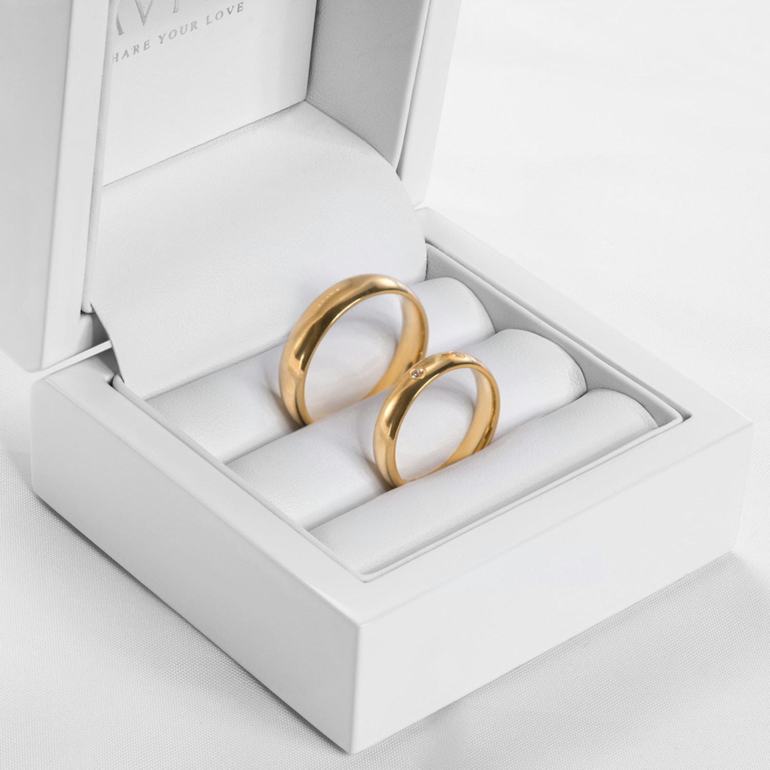 A kínálatunkban szereplő termékek az Ön álmai szerint is elkészíthetők. Válassza ki a szélességet, az arany színét, a nemesfém tisztaságát vagy típusát, sőt még a drágakövek foglalatát is, és élvezze az Ön kezdeményezésére készült ékszert!